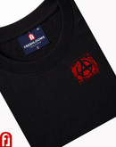 The front features a subtle red anarchy-inspired chest graphic, cleanly placed for a sharp, understated look. It keeps the aesthetic refined while hinting at the rebellious tone of the piece.