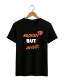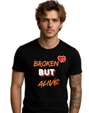 Express strength and resilience with our Broken But Alive graphic t-shirt. Designed on a classic black tee, this shirt features bold orange and white typography with a broken heart graphic, symbolizing survival through struggles. Made from soft, breathable fabric, it’s perfect for everyday wear while making a powerful statement. Pair it with jeans, joggers, or layered styles for a casual yet impactful look.